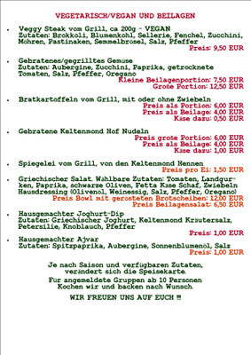 Für diesjähriges Mabon-Fest haben wir uns, wie immer, ein besonderes 3-Gänge Menü ausgedacht. Die Speisen begleiten die Jahreszeiten und die Ernte die gerade stattfindet. Wir kochen immer saisonal und regional und verwenden die hochwertigsten Zutaten die man bekommen kann. Das Fleisch kommt ausschließlich aus artgerechter Freilandhaltung und das Gemüse entweder von unserem Hof, oder von kleinen regionalen Betrieben die natürlich und unbelastet anbauen. Die Vegetarier bekommen bei uns immer die gleichwertige Speisen wie die Fleischesser. Bitte bei der Anmeldung erwähnen, so dass wir uns richtig vorbereiten können. Wir kochen viele Mehlspeisen, benutzen gute Butter, Eier und Sahne in unseren Gerichten. Bitte um Verständnis, dass wir auf Alergien und Unverträglichkeiten in diesem Bereich nicht individuell eingehen können und bei unseren Festen nicht die Speisekarte anbieten.