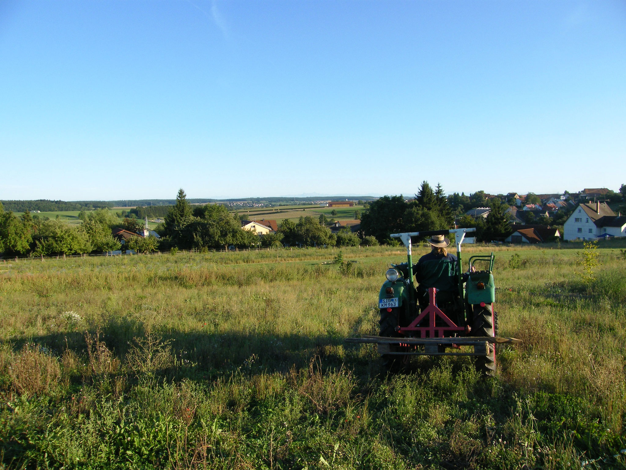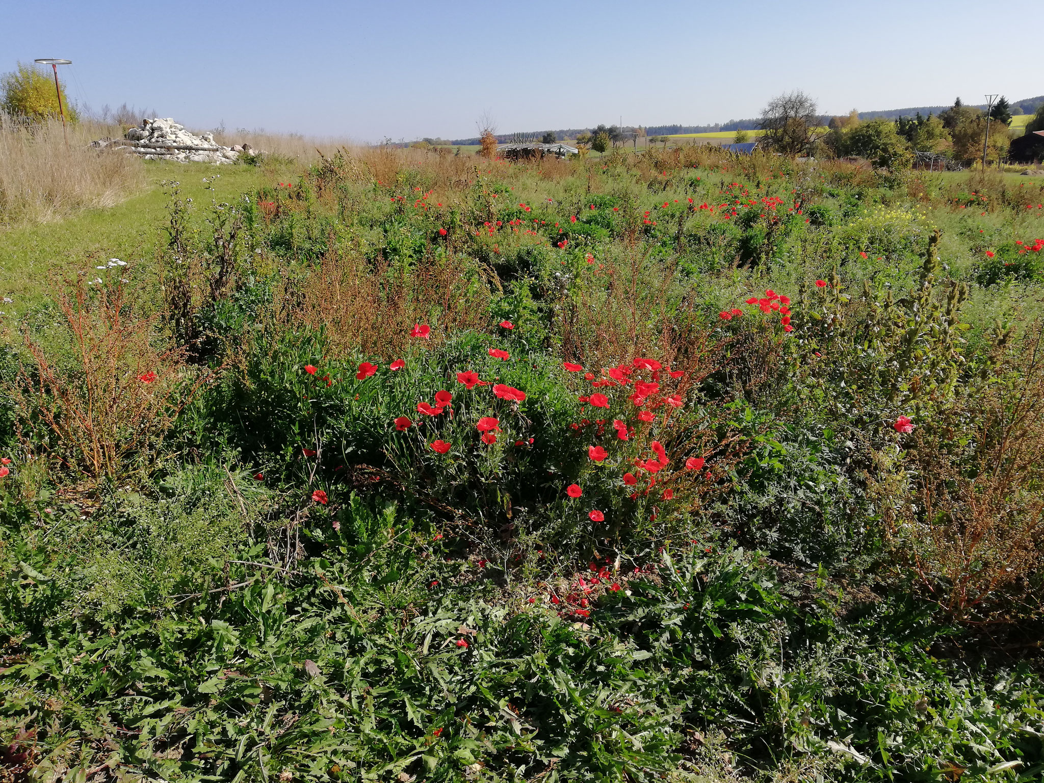 Die gesellschaftliche Vorstellungen, wie ein Garten auszusehen hat, sind manchmal sehr komisch. Die Natur ist schon vollkommen und perfekt. Wir müssen da nicht wirklich angreifen um es noch besser zu machen. Lernen von der Natur und leben mit der Natur ist unsere Einstellung. Im Laufe der letzten 6 Jahre, seit wir unseren Garten gestalten, haben wir unendlich viel erlebt und gelernt. Die Natur hat ihren Rhythmus und Vorgehensweise, wie aus einem Acker eine Naturwiese entsteht. Da kommen zuerst die Pionierpflanzen, die den Boden für die anderen vorbereiten. Dazu gehören die Ackermelde, Löwenzahn, Mohn, Disteln, Kletten und andere. Der Boden muss sich auch von der intensiven Bewirtschaftung erholen. Wenn man anfängt diese Pionierpflanzen zu bekämpfen, tut man sich keinen Gefallen. Diese müssen und wollen deren Werk zu Ende bringen und wenn man sie nicht lässt, dann kommen sie immer und immer wieder, bis es so weit ist. Diese ersten Bewohner haben eine sehr wichtige Rolle im weiteren Leben des Gartens und haben deren Daseinsberechtigung. Dazu sind sie auch sehr nützlich und man kann sie sehr gut in der Küche oder in der natürlichen Hausapotheke verwenden. Danach kommen die Sträucher und Bäume, wie verschiedene Weiden, Ahorn, Pappeln, Holunder, Schlehen usw. Da muss man etwas vorsichtiger sein und sich entscheiden ob man einen Wald oder eine Wiese / Weide haben möchte. Dazu haben wir uns die vierbeinigen Helfer geholt. Unsere Schafe räumen fleißig in der Wiese auf, mit deren kleinen Klauen verdichten sie den Boden, halten das Gras kurz und verhindern die Verwaldung des Bodens. Somit schaffen sie die Bedingungen für weitere pflanzliche Bewohner unseren Gartens. Unsere fliegenden Helfer sind unsere Bienen. Sie sorgen dafür, dass die Bäume und Sträucher Früchte tragen und bestäuben die Wiese.