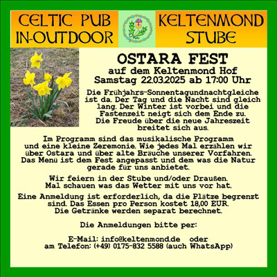 Eine Reservierung ist natürlich auch per E-Mail möglich: info@keltenmond.de